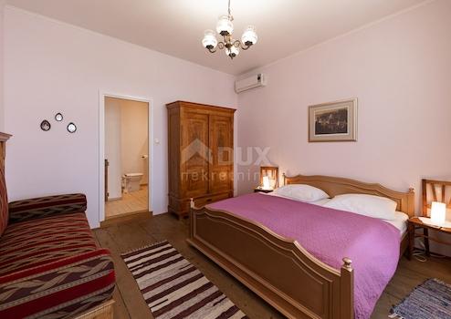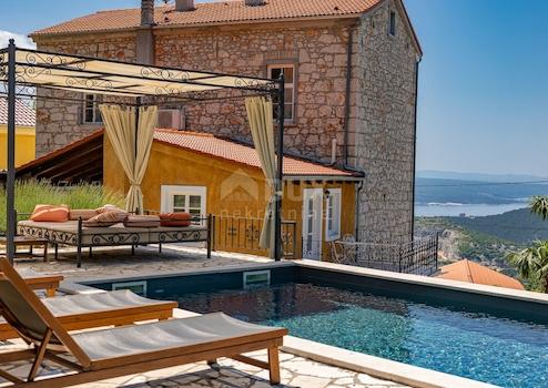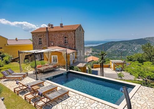 Wir verkaufen eine wunderschöne autochthone Villa mit einzigartiger Aussicht auf das Meer, das Vinodol-Tal, den Tribal Lake und die umliegenden Inseln. Die Villa ist eine perfekte Kombination aus modernem und historischem Interieur. Die Eigentümer versuchten, die ursprünglichen Merkmale der Villa (Holzbalken, Fußböden, Möbel, Wandmalereien) beizubehalten, während die nicht reparierbaren Teile der Villa sorgfältig durch modern-rustikale Materialien und Möbel ersetzt/abgestimmt wurden. Die Steinvilla wurde 1906 erbaut, daher ist es nicht verwunderlich, dass damals der traditionelle Grundriss verwendet wurde, bei dem sich die Treppe in der Mitte des Grundstücks befindet und sich auf jeder Seite ein großes Zimmer mit eigenem Bad befindet. So verfügt die Villa auf drei Etagen über fünf Schlafzimmer, jedes mit eigenem Bad, sowie ein Wohnzimmer mit Küche und Esszimmer. Das Dachgeschoss kann als zusätzliche Unterkunft genutzt werden. Zu den weiteren Räumen gehören ein separates WC im Hochparterre, ein Westbalkon, eine Weinecke und eine Waschküche im Erdgeschoss, ein zusätzlicher Raum für eine Sauna und eine überdachte Ostterrasse. Von der Küche aus gelangt man auf den Balkon und die Terrasse. Weitere Ausstattungsmerkmale der Villa sind Doppelfenster, Vorbereitung für Pellet-Zentralheizung, Klimaanlage in jedem Zimmer und Betonung der Fassade und des Daches, die regelmäßig gewartet werden. Neben dem Haus gibt es einen überdachten Parkplatz und ein kleines Wirtschaftsgebäude. Steintreppen und Mauern bilden den gesamten Garten, der auch eine Kegelbahn, einen Swimmingpool mit überdachter Terrasse, einen Grill und einen Eingang zur Taverne/Keller hat. Der Pool bietet einen Panoramablick auf das Tal und das Meer. Eine Rarität, die echte Käufer angesichts der historischen Geschichte, die in der Villa noch vorhanden ist, zu schätzen wissen werden. Empfehlung des Maklers!