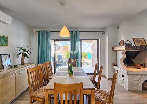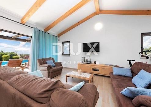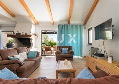 In einer märchenhaften Landschaft im Hinterland von Višnjan, am Rande des Dorfes, steht eine Villa mit Panoramablick zum Verkauf. Das Innere der Villa strahlt Komfort und Luftigkeit mit viel natürlichem Licht und Wärme aus, die durch die Holzbalken an den hohen Decken hervorgerufen werden. Die Fläche der Villa von 155 m² verteilt sich auf Erdgeschoss und Obergeschoss. Im Erdgeschoss befindet sich ein Wohnzimmer mit Esszimmer und Küche mit Zugang zu einer überdachten Terrasse, ein Schlafzimmer mit eigenem Badezimmer, eine Eingangshalle, ein Gäste-WC und eine Waschküche, sowie ein Abstellraum mit einem separater Eingang. Im Obergeschoss befinden sich zwei geräumige Schlafzimmer, jedes mit eigenem Bad und Terrasse. Beide Terrassen haben einen Panoramablick auf das Meer und die Umgebung. Die Heizung/Kühlung der Villa erfolgt über Klimaanlagen und einen Kamin für feste Brennstoffe im Wohnbereich, während die Warmwasserbereitung durch Sonnenkollektoren erfolgt (zwei Platten und Installation für zwei weitere). Neben der Villa befindet sich ein 36 m² großer Swimmingpool mit Sonnendeck, der auch einen Panoramablick auf das grüne Hinterland und die malerische Stadt Višnjan bietet, die nicht von den Olivenhainen und landwirtschaftlichen Flächen rund um die Villa verdeckt wird Nordwestseite. Das Anwesen ist komplett ausgestattet und möbliert und wird als solches verkauft. Diese komfortable Villa in attraktiver Lage ist eine ideale Gelegenheit für das Familienleben oder als Kapitalanlage zur Vermietung für touristische Zwecke (das Objekt ist mit 4 Sternen kategorisiert).