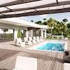 Wir verkaufen ein schönes modernes einstöckiges Haus mit Pool und Panoramablick auf das Meer. Die Villa befindet sich in exklusiver Lage und ist Teil eines Projekts mehrerer Luxusimmobilien. Auf einer Etage befinden sich ein Wohnzimmer mit Küche und Esszimmer, ein Flur, eine separate Toilette, drei Schlafzimmer, drei Badezimmer, eine Waschküche, eine Sauna/Jacuzzi und eine überdachte Terrasse von 32 m2. Der Garten umfasst einen Swimmingpool, zwei Parkplätze, eine überdachte Terrasse und einen Garten. Eine Seltenheit auf dem Markt in Anbetracht der Bauqualität eines der angesehensten Investoren in der Gegend.