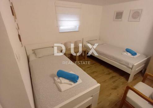 Das Anwesen, das sich ideal als Ferienhaus eignet, befindet sich in einem kleinen und ruhigen Ort in der Nähe der Stadt Krk, ca. 5 km vom Meer entfernt. Die Antiquität ist ein Familienerbstück und wurde mit viel Liebe zum kleinsten Detail komplett renoviert. Die Renovierung wurde 2019 abgeschlossen und umfasste neben dem strukturellen Teil des Hauses den Austausch aller Strom- und Wasserinstallationen, während das Dach 2018 erneuert wurde. Der Hinterhof mit einem Swimmingpool, einem Gartenhaus/Maschinenraum für den Pool und einem Sonnendeck wurde 2022 erbaut und ist mit äußerst hochwertigen Steinböden ausgestattet. Die Doppelhaushälfte mit einer Gesamtwohnfläche von 74 m2 besteht aus einem Untergeschoss, einem Erdgeschoss und einem hohen Dachgeschoss. Der Eingang im Erdgeschoss gibt den Blick auf den großzügigen Wohnbereich mit Küche, Ess- und Wohnzimmer sowie Abstellraum frei. Eine Innentreppe führt in den Keller mit Flur, einem Schlafzimmer, Bad und Waschküche. Vom Erdgeschoss gelangen Sie auch über die Innentreppe in das hohe Dachgeschoss mit einem sehr geräumigen Schlafzimmer. Das Haus ist mit PVC-Tischlerei mit Jalousien und Klimaanlage ausgestattet, und es besteht auch die Möglichkeit, mit einem reparierten alten Kaliofen zu heizen. Der Hof mit ca. 150 m2 ermöglicht bequemes Parken für ein Auto. Vor dem Eingang des Hauses befindet sich ein Pavillon mit Grill und rund um den Pool eine Liegewiese mit hochwertigen Sonnenliegen. Das Gartenhaus wird als Maschinenraum für den Pool und als Abstellraum genutzt. Das Objekt ist als Ferienhaus kategorisiert und erzielt durch die Qualität der Ausstattung, die ruhige Lage und die gebotene Privatsphäre außergewöhnliche Buchungen. Es wird möbliert verkauft. Die Dokumentation ist in Ordnung und das Objekt ist sauber und lastenfrei.