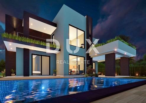 Unweit von Rabac und Labin steht eine attraktive Villa in Alleinlage zum Verkauf. Die Villa verbindet einen modernen Stil mit einer malerischen Landschaft und wurde nach den neuesten technischen Standards gebaut. Die Aufteilung des Innenraums bietet ein harmonisches Wohnambiente auch für höchste Ansprüche. Die Fläche dieser zeitgenössischen Villa beträgt 210 m² und verteilt sich auf zwei Etagen; Erdgeschoss und Obergeschoss. Der von Tageslicht durchflutete Wohnraum im Erdgeschoss ist offen gestaltet und vereint Wohnzimmer, Esszimmer und Küche mit Zugang zur überdachten Terrasse. Im Erdgeschoss gibt es außerdem ein Schlafzimmer mit eigenem Bad und Zugang zur Terrasse, eine Toilette und einen Abstellraum. Im ersten Stock gibt es ein Badezimmer und zwei Schlafzimmer mit eigenen Terrassen. Neben der Villa befindet sich ein 32 m² großer Swimmingpool mit Sonnendeck. Der Hof, wo Ruhe, Frieden und Harmonie mit der Natur in jeder Ecke zu spüren sind, ist angelegt und eingezäunt. Diese Villa mit markantem Design, am Ende eines Baugebiets gelegen, ist die perfekte Immobilie für das Familienleben oder als Kapitalanlage zur Vermietung für touristische Zwecke. Die Villa ist in Fertigbauweise, befindet sich im Bau und wird nach dem "schlüsselfertigen" System verkauft, das es dem zukünftigen Eigentümer ermöglicht, die endgültige Anordnung nach persönlichen Vorlieben zu wählen. Der geplante Abschluss der Arbeiten wird Ende 2022 erwartet.