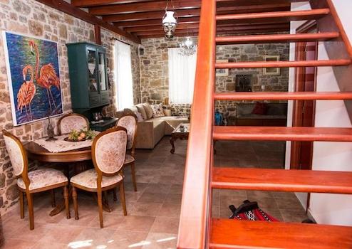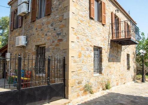 A traditional house, professionally renovated 5 years ago in accordance with the island's typical architecture and furnished/decorated by a well-known artist, in the small village Palio Pedino, 10 minutes from the airport and just under 20 minutes from the island's capital Myrina!