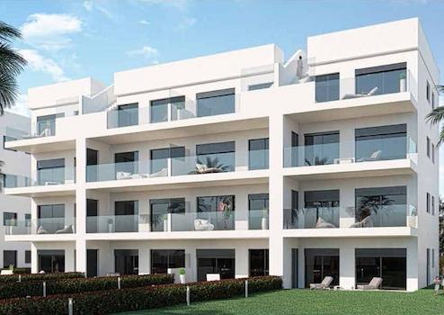 Diese modernen und geräumigen Wohnungen verfügen über 2 Schlafzimmer und 2 Bäder, die Wohnungen im Erdgeschoss haben einen schönen Garten, im ersten und zweiten Stock kann man eine großzügige Terrasse genießen und die Penthouse-Wohnungen verfügen über private Dachterrassen. Es gibt außerdem einen Gemeinschaftspool und Kfz-Stellplätze.