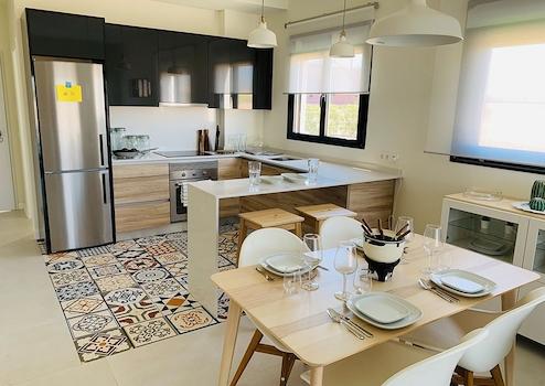 Diese Apartments in erster Linie am Golfplatz liegen ganz in der Nähe des Haupteinkaufszentrums der Golfanlage. Hier gibt es unter anderem einen Supermarkt sowie einladende Bars und Restaurants. Es gibt außerdem eine Buslinie zum neuen Flughafen von Murcia und zu den wunderschönen Stränden von Mazarrón.