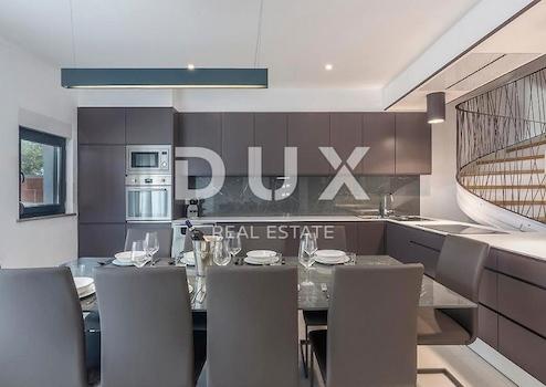 Nur wenige hundert Meter vom strengen Zentrum von Novigrad, den Stränden und allen Einkaufs-, Kultur-, Bildungs- und Freizeiteinrichtungen entfernt, steht ein Luxushaus mit Swimmingpool zum Verkauf. Neben der Lage zeichnet sich das Haus durch Bauqualität, modernes Erscheinungsbild, Komfort und luxuriöse Ausstattung aus. Die Fläche des Hauses von 180 m² ist elegant in ein Erdgeschoss und einen ersten Stock und eine Dachterrasse aufgeteilt. Das Erdgeschoss besteht aus einem geräumigen Wohnzimmer, das mit einem offenen Esszimmer und einer Küche mit Zugang zu einer überdachten Terrasse, Schlafzimmern, Badezimmern und Abstellräumen kombiniert ist. Im Obergeschoss befinden sich drei Schlafzimmer mit eigenem Bad, zwei überdachte Terrassen und eine Treppe, die zur Dachterrasse führt. Auf der großzügigen Dachterrasse mit Blick auf das Meer und die Stadt befindet sich ein Whirlpool. Das Heizen/Kühlen des Hauses erfolgt über Klimaanlagen und Fußbodenheizung, und die Warmwasserbereitung erfolgt über Sonnenkollektoren. Neben dem Haus, auf dem gepflegten und umzäunten Garten, befindet sich ein 30 m² großer Swimmingpool mit gepflasterter Sonnenterrasse, eine Sommerküche und ein von einer Pergola überdachter Loungebereich. Das Anwesen ist komplett ausgestattet und möbliert und wird als solches verkauft. Dieses Luxushaus ist eine ideale Immobilie für das Familienleben oder als Investition zur Vermietung für touristische Zwecke.