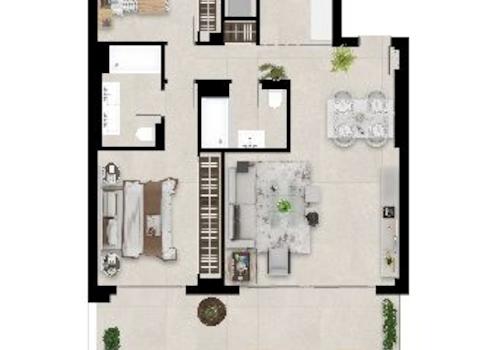 Die Apartments mit 2 oder 3 Schlafzimmern und die wunderschönen Penthouse- und Maisonette-Apartments sind umgeben von ansprechend gestalteten Gartenanlagen und vier Gemeinschaftspools.