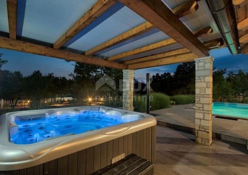 Svetvinčenat, ein wunderschöner Ort im südlichen Teil von Istrien, genau auf halber Strecke zwischen Pula und Pazin. Der Ort ist berühmt für sein wunderschönes Grün, die Wälder, Weiden, Weinberge und die Zitadelle im Zentrum der Stadt. Nur wenige Kilometer vom Stadtzentrum entfernt steht diese wunderschöne Villa mit großem Garten zum Verkauf. 294 m2 auf Untergeschoss, Erdgeschoss und Obergeschoss verteilt. Im Untergeschoss des Hauses befindet sich ein multifunktionaler Raum mit Fitnessgeräten, Speisekammer und Heizraum. Im Erdgeschoss gibt es ein Schlafzimmer mit eigenem Bad, ein Gästebad, eine voll ausgestattete Küche und ein Wohnzimmer mit Zugang zu einer überdachten, geräumigen Terrasse mit Blick auf den Pool und das Grün. Im Obergeschoss befinden sich 3 Schlafzimmer mit jeweils en-suite Badezimmern. Der Garten des Hauses ist 2000 m2 groß mit einem multifunktionalen Platz (Fußball, Basketball, Volleyball), Minigolf, Kinderspielplatz. Das Anwesen ist perfekt für Leute, die ihre Ruhe und Privatsphäre suchen, während sie in der Nähe aller Annehmlichkeiten sind. Das Haus ist kategorisiert und vermietbar, falls Sie sich im Tourismus engagieren möchten. Das Anwesen ist auf jeden Fall Ihre Aufmerksamkeit wert.