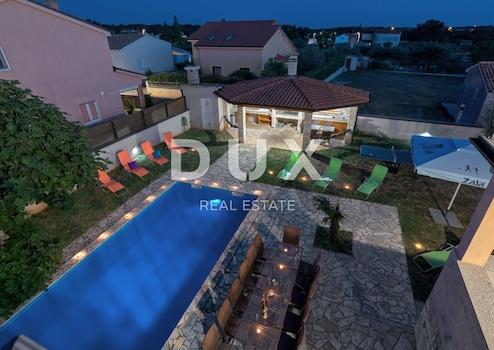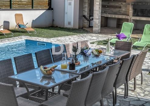 Eine große Ferienvilla zum Verkauf in Jadreški, nur 5 km von den ersten Stränden und 6 km vom Zentrum von Pula entfernt. Das Anwesen wurde 2014 erbaut und kann als Ferienhaus oder als 3 separate Wohneinheiten mit jeweils separatem Eingang und Meter genutzt werden.Zum Verkauf steht ein wunderschönes Ferienhaus mit 6 Schlafzimmern, 3 Wohnzimmern und 3 voll ausgestatteten Küchen. 4 Badezimmer und 2 Terrassen. Es besteht aus Untergeschoss, Erdgeschoss und Obergeschoss und hat eine Gesamtbruttofläche von 450m2. Jede Etage hat durchschnittlich 130m2. Das Haus liegt auf einem eingezäunten und schön angelegten Garten von 971 m2. Im Garten gibt es einen Swimmingpool mit Sonnenliege, eine überdachte Terrasse mit Sommerküche, einen Kamin, einen großen Esstisch, einen Gasgrill, Grillzubehör, einen Abstellraum für Fahrräder, einen Parkplatz für 4 Autos. Innerhalb des Hauses gibt es auch einen Raum mit zusätzlichen Unterhaltungsmöglichkeiten wie Billard. Das Anwesen ist aufgrund seiner Kapazität spezifisch, da es Gruppen von bis zu 20 Personen akzeptiert, und aufgrund der Aufteilung bietet es, wie bereits erwähnt, verschiedene Optionen für zukünftige Eigentümer.