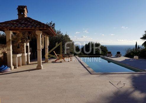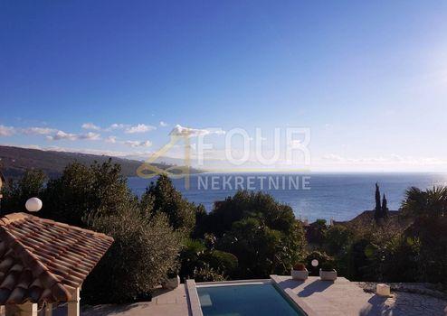 Das Anwesen ist in drei Etagen aufgeteilt, hinter der Villa befindet sich ein Parkplatz für drei Fahrzeuge, während sich vor dem Haus eine offene Terrasse mit Swimmingpool befindet. Es gibt auch ein Haus mit Grill. Wenn Sie weiter gehen, steigen Sie in einen wunderschönen Park mit vielen Palmen, mediterranen Pflanzen und anderem Grün hinab. Der Meerblick ist vom Erdgeschoss und von allen Teilen der Terrasse frei.