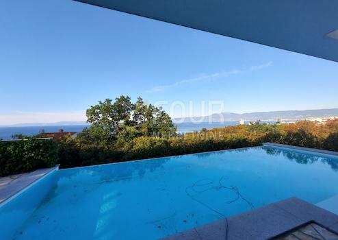 Der Hof von 1333 m2 ist voller Grün mit einem Außenpool und bietet einen schönen Blick auf das Meer.