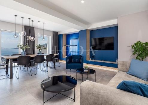 Im Erdgeschoss des Hauses gibt es einen offenen Bereich des Wohnzimmers, Küche und Esszimmer mit Zugang zur Terrasse durch den Swimmingpool mit einem spektakulären Blick auf das Meer dominiert.
