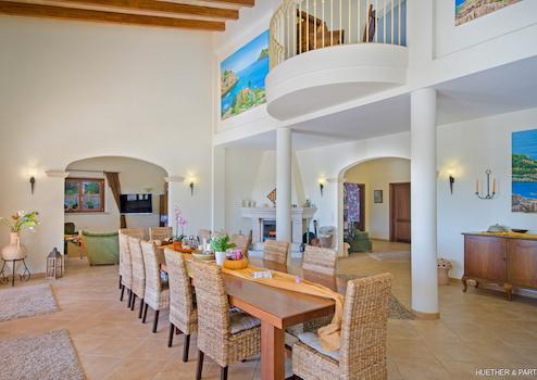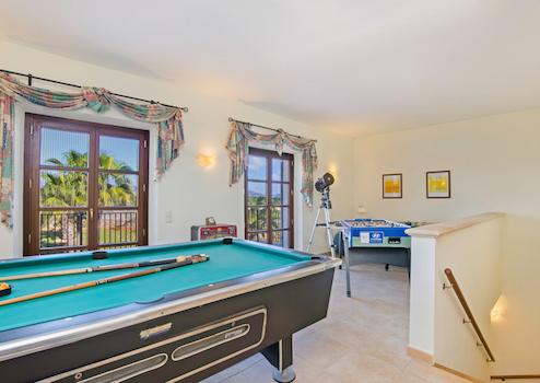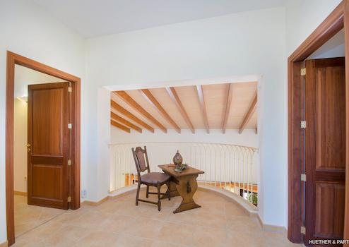 Eine Treppe führt Sie in das Obergeschoss der Finca. Hier werden Sie von einer Galerie empfangen, die in das Billiardzimmer übergeht. Von hier aus gelangen Sie auf die große Terrasse des Obergeschosses. Genießen Sie einen traumhaften Weitblick bis hin zum Meer.