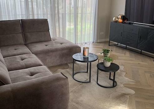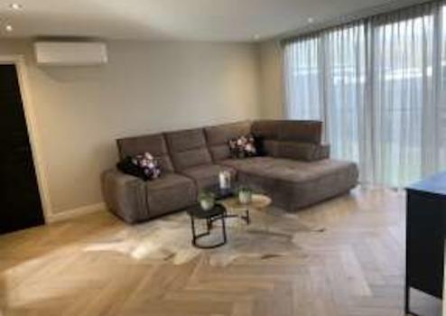 Schönes, luxuriöses, freistehendes Chalet mit angelegtem Garten mit überdachter Terrasse und Holzveranda mit Beleuchtung. Teilweise verputzt und teilweise mit Holz verkleidet. Oben isoliert. Das Chalet hat ein geräumiges Wohnzimmer mit großen Fenstern und Eichenholzboden und Klimaanlage. Geräumige Küche mit Essecke für 6 Personen, Küche mit kombiniertem Backofen und Geschirrspüler, großem 6-Flammen-Gasherd mit Dunstabzugshaube und Kühlschrank.