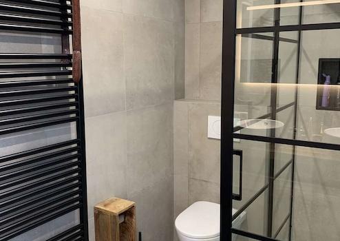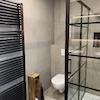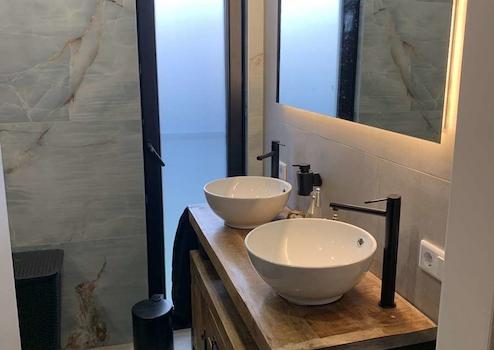 Design radiator, dubbel wastafel meubel met twee kommen.