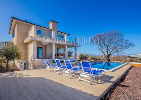 Umgebung von Malinska, neues Steinhaus mit Pool und Meerblick !!