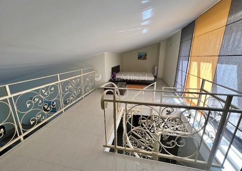Eine innere Wendeltreppe führt zur Galerie, die als Schlafzimmer genutzt wird, und zum Zugang zur Dachterrasse (21,74 m2 x 0,25 = 5,44 m2).