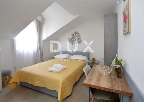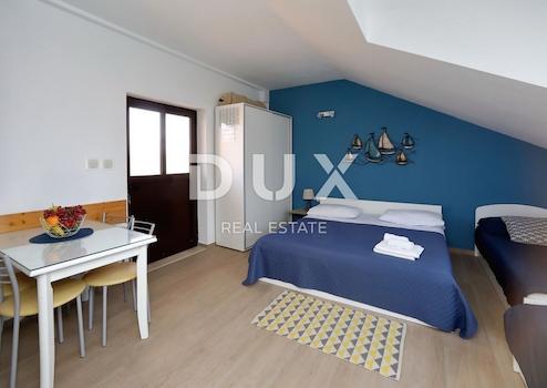 Schöne Apartmentvilla zum Verkauf in Bibinje in der Nähe von Zadar. Es ist nur 10 m vom Meer entfernt und wurde 2010 auf einem Grundstück von 830 m2 gebaut. Das Gebäude mit einem etablierten Tourismusbetrieb besteht aus drei Etagen mit separaten Eingängen und einer Gesamtwohnfläche von 400 m2. Im Erdgeschoss befindet sich eine große Dreizimmerwohnung mit Wohnzimmer, Küche, Esszimmer und zwei Badezimmern. Im Erdgeschoss gibt es auch einen Abstellraum, einen Abstellraum, eine Waschküche, eine Garage und ein zusätzliches WC. Im ersten Stock befindet sich eine weitere Dreizimmerwohnung mit Wohnzimmer, Küche und Esszimmer, zwei Bädern und einer großzügigen Terrasse mit wunderschönem Meerblick. Im Dachgeschoss befinden sich eine Einzimmerwohnung und drei Einzimmerwohnungen. Das Gebäude wurde 2022 komplett saniert, dabei wurden die Fassade geändert, neue PVC-Tischlerei mit Dreischichtverglasung, Bodenbeläge und Möbel eingebaut. Im komplett eingezäunten Hof gibt es einen wunderschön angelegten Garten, eine Sommerküche mit Grill und Außentisch sowie einen Privatparkplatz mit sechs Stellplätzen. Durch den Hof erreichen Sie den Kiesstrand mit einer Promenade, die zum Zentrum von Bibinje führt. Bibinje ist ein malerischer Küstenort an der dalmatinischen Küste, der mit wunderschönen Stränden und unberührter Natur verzaubert. Die Stadt Bibinje ist 7 km vom Stadtzentrum Zadar und 14 km vom nächsten Flughafen Zemunik entfernt. Es gibt auch verschiedene Nationalparks, Naturparks und zahlreiche Inseln mit kristallklarer Adria in der Umgebung. In unmittelbarer Nähe von Bibinje befindet sich zum Beispiel einer der berühmtesten kroatischen Nationalparks, der Nationalpark Kornati, der Sie mit seiner beeindruckenden Geographie, bestehend aus nicht weniger als 89 Inseln, Inselchen und Felsen, in Atem hält.