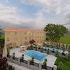 Die Kommunikation mit dem Hof erfolgt über das Erdgeschoss, das einen Durchgang zur Liegewiese, zum Swimmingpool und zu den dazugehörigen Einrichtungen bietet.