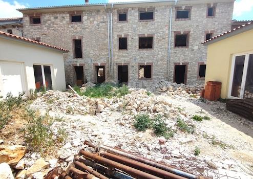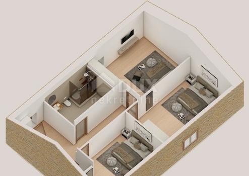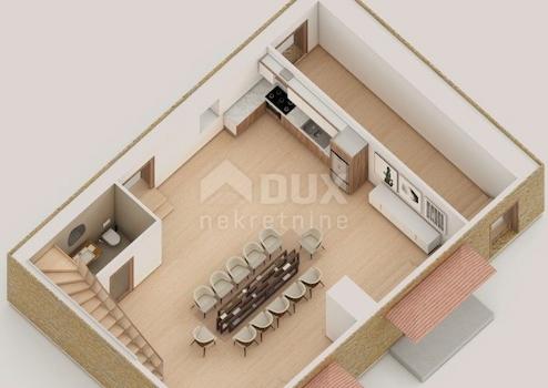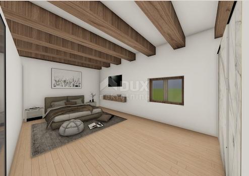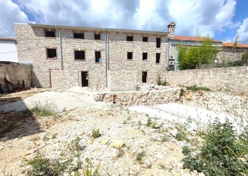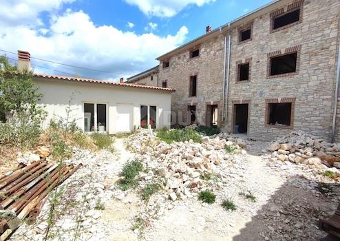 Im Zentrum von Juršići, in einer ruhigen Sackgasse, befindet sich dieses neue Projekt eines dreistöckigen Steinhauses mit Swimmingpool und Nebengebäude.
