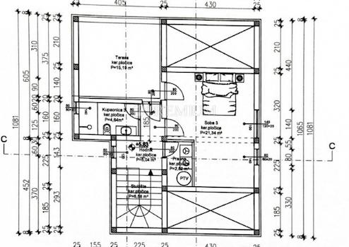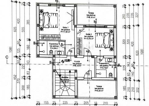Die Fläche des Hauses beträgt 171 m2 und umfasst das Erdgeschoss, den ersten Stock und den Dachboden.