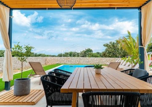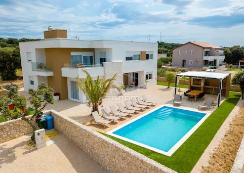 Insel Pag, Kolan, Mandre - wir verkaufen eine moderne, neu gebaute Villa mit Swimmingpool, komplett möbliert und ausgestattet für den Tourismus.