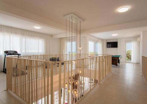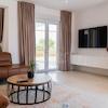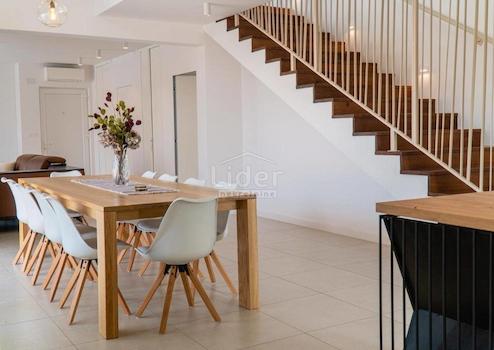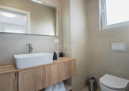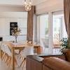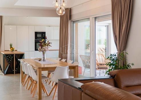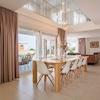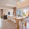 Das Erdgeschoss hat ein modernes offenes Konzept und besteht aus einem geräumigen Wohnzimmer, das mit dem Esszimmer verbunden ist, und einer großen, voll ausgestatteten Küche. An allen Seiten befinden sich große Glaswände, die für viel Sonnenlicht sorgen. Im Obergeschoss befinden sich die Schlafzimmer, jedes mit eigenem Bad.