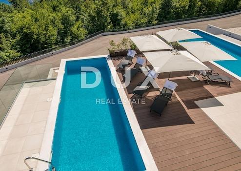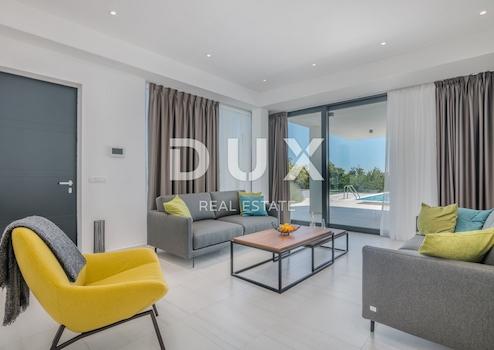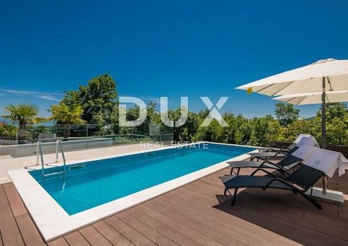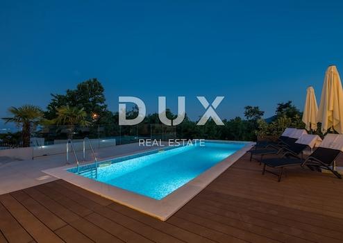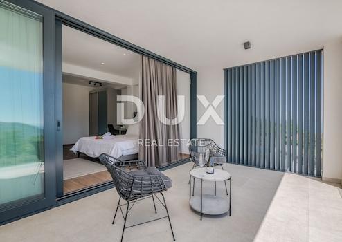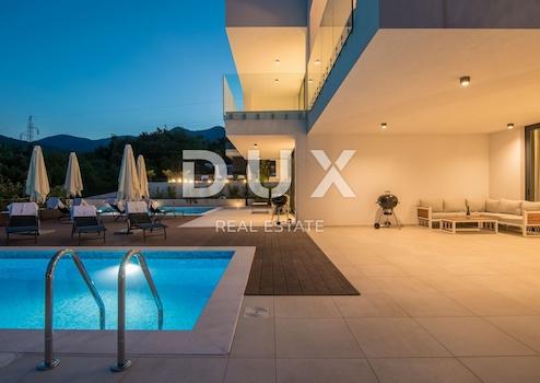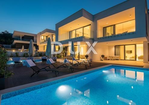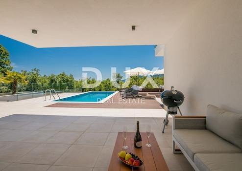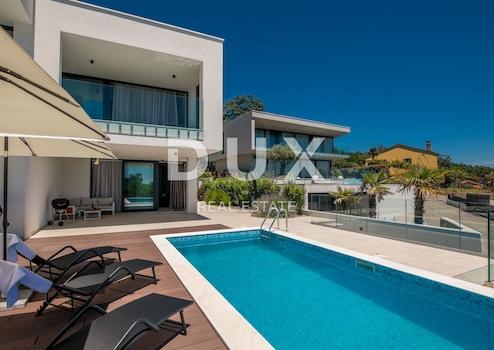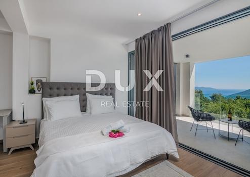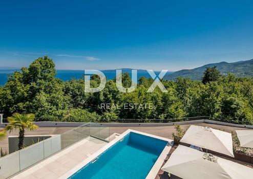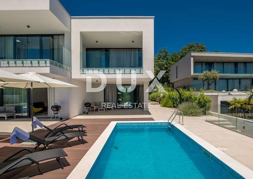 Dux Real Estate Agency bietet diese neu erbaute Villa mit atemberaubender Aussicht in der Nähe des magischen Opatija an. Mit einem der schönsten Ausblicke auf die Kvarner Bucht, in der Bucht gelegen, geschützt vor der Bora, gut gebaut und ausgestattet in hervorragender Lage, bietet Ihnen dieses Haus einen unvergesslichen Aufenthalt. Seine Wohnfläche von 247 m2 erstreckt sich über drei Etagen – Untergeschoss, Erdgeschoss und Obergeschoss. Das Erdgeschoss von 78 m2 verfügt über ein geräumiges Wohnzimmer mit großen Glaswänden, Küche mit Essbereich und Toilette. Auf der ersten Etage von 94 m2 befinden sich drei Schlafzimmer mit eigenem Bad, von denen eines über einen Balkon verfügt, von dem aus Sie den wunderschönen Meerblick genießen können. Im Untergeschoss dieser schönen Villa befindet sich ein Fitnessraum (36m2), ein Heizungsraum (33m2), ein Pool-Maschinenraum (6m2), ein Abstellraum und eine Garage für drei Autos. Das Haus ist mit Klimaanlage, Heiz- und Kühlsystem und Fußbodenheizung - Wärmepumpen - ausgestattet. Bei der Dekoration wurden nur hochwertige Materialien verwendet, wodurch die Villa den Status einer Luxusimmobilie erhält. Der Hof dieser Villa ist 350 m2 groß, wenn man die vom Haus belegte Fläche ausschließt, und die gesamte Grundstücksfläche beträgt 550 m2. Im Hof gibt es einen Garten, einen Swimmingpool (30 m2) mit Strand und zwei Außenparkplätze. Die Luftentfernung vom Meer beträgt nur 1.500 Meter und die Straße zum ersten Strand etwa 3 km. Die geplante Fertigstellung der Einrichtung der Villa ist für Ende April 2022 geplant, der Preis wird für die fertiggestellte Villa ausgedrückt. Der Käufer zahlt keine Grunderwerbssteuer, da der Preis die Mehrwertsteuer enthält. Ein ideales Haus für diejenigen, die vermieten möchten, aber auch als Gelegenheit für ein luxuriöses Familienhaus.