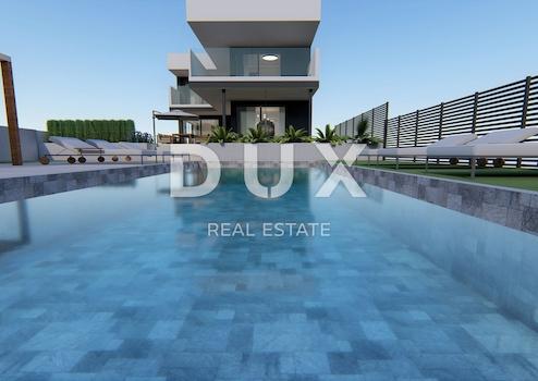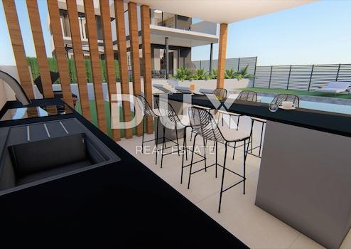 Moderne Villa von 330 m2 zum Verkauf auf einem Grundstück von 1000 m2, bestehend aus Erdgeschoss und erstem Stock. Im Erdgeschoss gibt es einen Korridor, einen Maschinenraum, einen Abstellraum, einen Fitnessraum, ein Badezimmer mit Sauna, ein Billardzimmer (26 m2) und ein geräumiges Wohnzimmer von 30 m2, das mit der Küche und dem Esszimmer (30 m2) verbunden ist. Das Wohnzimmer führt zu einer überdachten Terrasse von 43 m2, vor der sich ein Swimmingpool, ein Sonnendeck und ein Sommerkamin mit Pergola befinden. Vom Erdgeschoss führt eine Innentreppe in den ersten Stock, wo sich fünf Schlafzimmer mit Einbauschränken und angeschlossenen Badezimmern sowie eine überdachte Terrasse befinden. Die Villa wird komplett möbliert verkauft. Der Hof ist weitläufig, so dass es neben dem Swimmingpool auch Ecken für Familientreffen und Erholung geben wird, von einem Kinderspielplatz bis zu einem kleineren Sportplatz, die alle von mediterraner Vegetation umgeben sein werden. Kaštela ist eine malerische Stadt in Mitteldalmatien, in unmittelbarer Nähe von Split, der größten kroatischen Stadt am Meer, Trogir, einer Stadt unter UNESCO-Schutz, und Solin, bekannt für sein antikes Salona aus der Römerzeit. Kaštela ist der Name für sieben kleinere, miteinander verbundene Städte entlang der Küste der Bucht von Kaštela. Sie sind 18 km von der Stadt Split entfernt, während sie nur 4 km vom Flughafen Split entfernt sind.