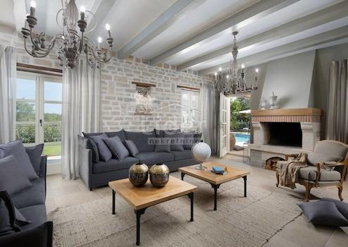 ISTRIEN - in der Nähe von Kanfanar, nur 23 km von Poreč und 26 km von Rovinj entfernt, steht eine schöne Villa zum Verkauf, eine Etage von 359 m2 Wohnfläche mit 876 m2 Garten und einem 50 m2 großen Swimmingpool.