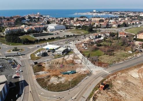 Baugrundstück hat eine Gesamtfläche von 2442 m2. Das Bauland hat insgesamt 2442 m2. Der beste Wirtschaftsstandort in Umag. Richtige Form des Landes, Zugang von Asphalt, alle notwendigen Infrastrukturen entlang des Geländes. Möglichkeit des Baus eines Gewerbegebäudes max. Grundfläche von 1221 m2. Die maximale Anzahl der Stockwerke des Gebäudes beträgt 5 oberirdische und 2 unterirdische Stockwerke. Ideale Immobilie für Investoren, die die attraktivste Position für ihr Geschäft suchen. In der Nähe von Lidl, Spar, Bipa, Teddy, Intersport, Tankstelle und mehr.
