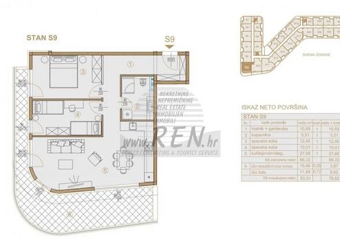 Wohnung in Poreč haben insgesamt 78,82 m2, Die Wohnung befindet sich am erste Stock, im Bau, nur 5 min. (300m) vom Meer und schönen Stränden, 5 min. (300m) sind Sie vom Stadtzentrum Poreč entfernt. Die Wohnung besteht aus Küche/Wohnzimmer/Esszimmer, 2 Schlafzimmer, Badezimmer, Terrasse. Die Wohnung ist ausgestattet mit Klimaanlage, Aufzug, Blick auf das Meer. Stellplatz in der Garage wird separat mit € 30.000,- bezahlt.