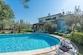Neben Palmen und Zierpflanzen gibt es auch einen Swimmingpool sowie einen Erholungs- oder Entspannungsbereich im angelegten Garten.