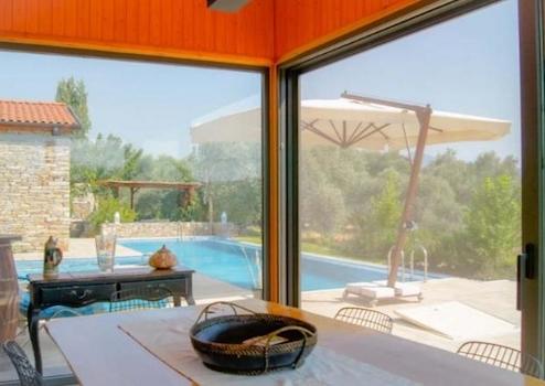 Stone house 270 square meters. Terrace area 350 square meters. The garden is 6 acres. 64 olive trees, 150 fruit trees in total.