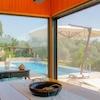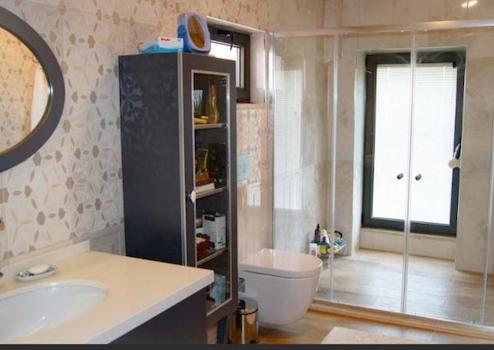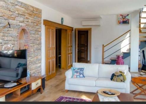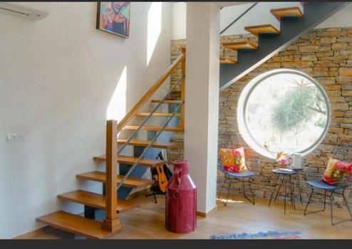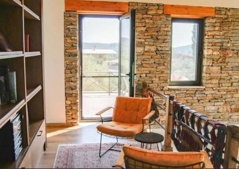 Stone house. Three bedrooms, a living room, a cellar, 3 bathrooms, a toilet. Heat pump, underfloor heating, solar energy, automatic irrigation system, salt pool with jacuzzi.