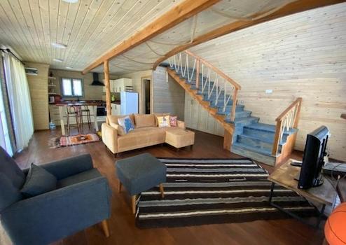 Wooden house, one room, one living room, kitchen, bathroom and toilet. 65 square meters.