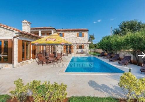 Zum Verkauf steht eine 240 m2 große Villa mit Swimmingpool in der Nähe von Juršić. Die Villa erstreckt sich über ein Grundstück von 955 m2. Es wurde im istrischen Stil erbaut und außen vollständig mit handgefertigtem Stein bedeckt.