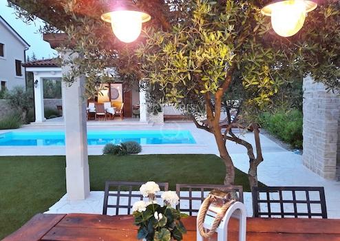 Insel Krk, Malinska - Umgebung, Verkauf, rustikales Haus mit Pool und schön angelegtem Garten am Rande der Bauzone.
