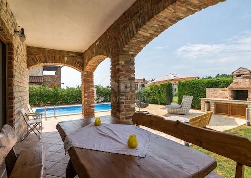 Nicht weit vom Zentrum von Svetvinčent sowie der Stadt Vodnjan entfernt befindet sich diese schöne Steinvilla mit einem Swimmingpool auf zwei Etagen mit einer Gesamtwohnfläche von 180 m2 in einer ruhigen und privaten Siedlung. So befindet sich im Erdgeschoss eine Eingangshalle, die den privaten Teil der Villa vom Bereich des Alltags trennt, wo das Wohnzimmer von Tageslicht durchflutet wird und die dann auch noch mit einem funktionalen Holzkamin geschmückt ist im selben Bereich gibt es auch eine voll ausgestattete Küche und ein Esszimmer. Ebenso gibt es vom Wohnzimmer einen Ausgang zur überdachten Außenterrasse, ideal für einen Morgenkaffee oder ein Glas Wein am späten Abend. Im privaten Teil des Erdgeschosses gibt es ein größeres Schlafzimmer mit direktem Zugang zum Garten und Blick auf den Pool, ein größeres Badezimmer und einen Abstellraum unter der Treppe. Der zweite Stock ist über eine Innentreppe zugänglich, wo sich 3 weitere Schlafzimmer befinden, von denen zwei Zugang zu einer gemeinsamen sonnigen Terrasse mit Blick auf das Dorf und einem unverbauten Blick auf das Meer und die Brijuni-Inseln haben. Der Hof von ca. 500 m2 lässt genug Platz für Spaß und Entspannung mit Freunden und Familie, reich an Grün, sowie einen privaten Pool von 32 m2 mit Sonnendeck. Es gibt auch eine kleine Sommerküche mit Grill, ideal für Sommertage. Der Hof ist komplett von einer Steinmauer umgeben, die Privatsphäre gewährleistet. Die Entfernung von der größten istrischen Stadt Pula beträgt 20 km, von Vodnjan 10 km und von Fažana 15 km. Es ist als Ferienhaus kategorisiert und kann dem zukünftigen Eigentümer ein lukratives Geschäft bringen.