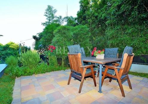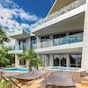 Im wunderschön angelegten Garten befindet sich ein Überlaufpool mit Sonnendeck und Loungemöbeln.