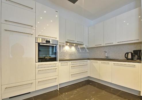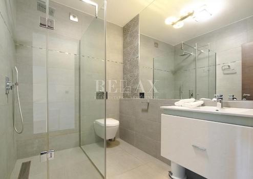 Auf der zweiten Etage befinden sich ein geräumiges Schlafzimmer, ein Badezimmer, ein Whirlpool und ein Fitnessraum sowie eine 90 m2 große Terrasse mit einem beeindruckenden Blick auf das Meer.