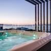 Das Penthouse wird von natürlichem Licht durchflutet und das System verschiebbarer Fassadenpaneele ermöglicht bei Bedarf einen selektiven Sonnenschutz, ohne den Blick auf das Meer zu verdecken.