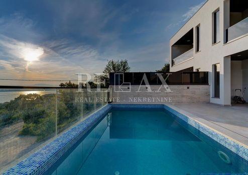 Ein Haus mit Swimmingpool und Garten mit wunderschönem Blick auf das Meer in Dramalj bei Crikvenica.
