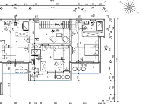 Im Untergeschoss gibt es eine Garage von 45,5 m2 für zwei Autos, einen Heizraum.