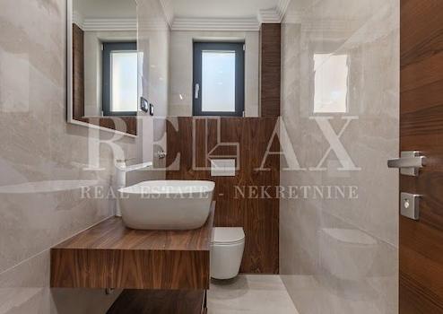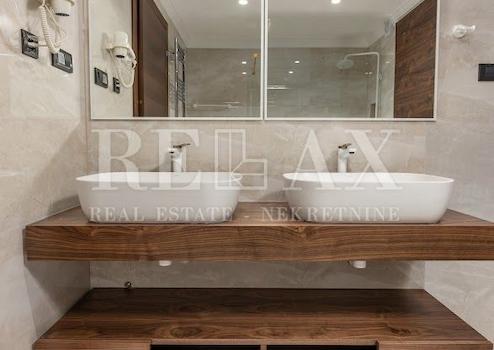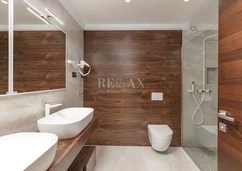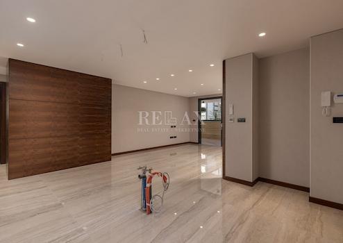 Das geräumige Luxusapartment besteht aus drei komfortablen Schlafzimmern, in denen die Tür aus Walnussholz des italienischen Herstellers Diere gefertigt wird, zwei Badezimmer und eine Toilette mit einer Kombination aus Holz und Keramik dekoriert werden. Die Wohnung verfügt über ein offenes Wohnzimmer mit Küche und Essbereich, das Zugang zu einer komfortablen Terrasse von 25 m2 hat.