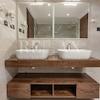 Die Böden, die sich durch die Wohnung ziehen, werden mit hochwertiger Porzellankeramik belegt, abgehängte Decken mit Einbauleuchten.