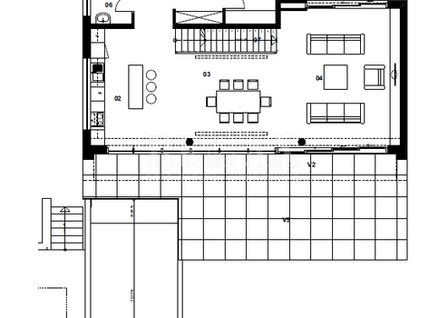 Im Erdgeschoss gibt es eine Waschküche, ein Badezimmer, eine Küche, ein Esszimmer und ein Wohnzimmer mit einem wunderschönen Blick auf das Meer durch große Glaswände.
