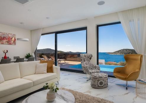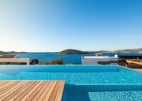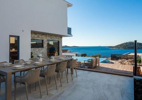 Eine Luxusvilla zum Verkauf in Rogoznica in der Nähe von Šibenik. Villa mit einer Gesamtfläche von 260 m2. Die Villa wurde 2020 auf einem Grundstück von 697 m2 erbaut, sie ist nur 90 m vom Meer entfernt und bietet einen wunderschönen Blick auf das Meer und den Sonnenuntergang. Im Erdgeschoss der Villa befinden sich ein geräumiges offenes Wohnzimmer, eine moderne Küche und ein Esszimmer, eine zusätzliche Toilette und ein Wellnessbereich mit Whirlpool und Sauna. Im ersten Stock der Villa befinden sich vier Schlafzimmer mit angeschlossenen Badezimmern und Terrassen. Die Villa ist klimatisiert und mit hochwertigen Designermöbeln ausgestattet. Das Wohnzimmer öffnet sich auf eine große Terrasse mit beheiztem Swimmingpool, Sonnendeck und Grill. Parkplätze mit drei privaten Parkplätzen stehen im Innenhof der Villa zur Verfügung. In unmittelbarer Nähe befindet sich die Marina Frapa, ein nautisches Paradies, für das Rogoznica berühmt ist. Eine große Anzahl unberührter Strände, die dieser wunderschöne dalmatinische Ort zu bieten hat, erstreckt sich über eine Küstenlinie von bis zu 50 km. Einer der interessantesten Orte in Rogoznica ist sicherlich Dragon's Eye, ein natürlicher Salzsee, der sich auf der Halbinsel Gradina in der Nähe des Yachthafens Frapa befindet. Es gibt auch mehrere Nationalparks und Naturparks in der Umgebung. In unmittelbarer Nähe von Rogoznica befindet sich beispielsweise der Nationalpark Kornati, auch als Perle der Adria bekannt. 35 km nördlich liegt die Stadt Šibenik, deren malerische Gassen an das einstige Mittelmeer erinnern. 50 km südlich liegt die Stadt Split, das kulturelle und administrative Zentrum Mitteldalmatiens.