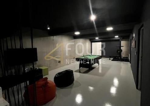 Der Keller der Villa besteht aus 41,20 m2 Fläche, die eine Entspannungs-/Spaßzone umfasst - Sauna, Dusche, Whirlpool, Billard, Fitnessraum, zwei separate Maschinenräume für Wärmepumpen und einen Swimmingpool sowie eine Waschküche.
