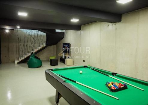 Der Keller der Villa besteht aus 41,20 m2 Fläche, die eine Entspannungs-/Spaßzone umfasst - Sauna, Dusche, Whirlpool, Billard, Fitnessraum, zwei separate Maschinenräume für Wärmepumpen und einen Swimmingpool sowie eine Waschküche.