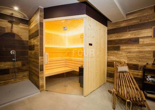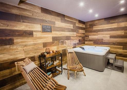 Im Innenhof der Villa befindet sich ein beheizter Infinity-Pool mit Liegewiese zum Entspannen und Genießen.